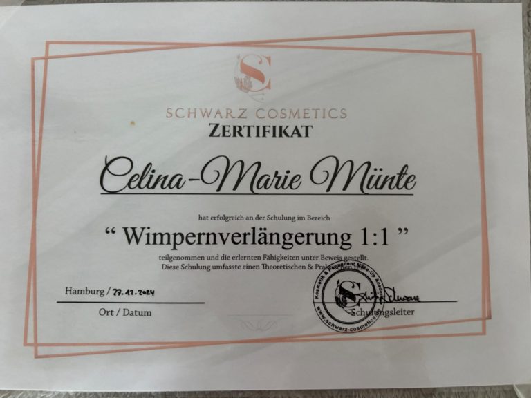 Ich bin Celina Marie Münte - zertifizierte Lash-Stylistin & BB-Glow-Artistin aus Bad Fallingbostel und die Gründerin von celinamariecosmetics.